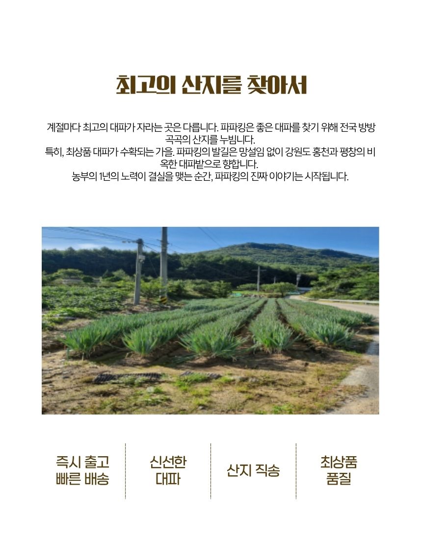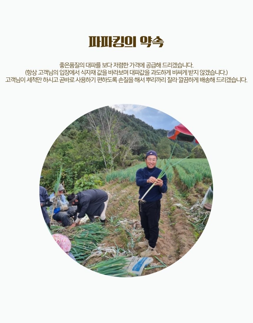 - ※ 수확 시기에 따라 대파의 크기·색상·모양이 다를 수 있습니다.